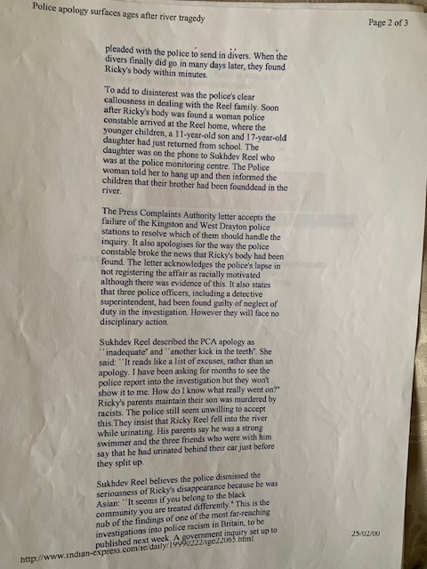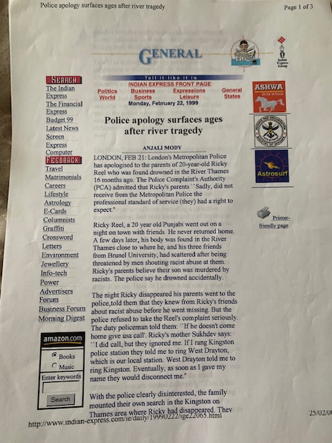 In this new book Ricky’s mother Sukhdev Reel tells the powerful and moving story of Ricky’s life and her family’s struggle for justice.